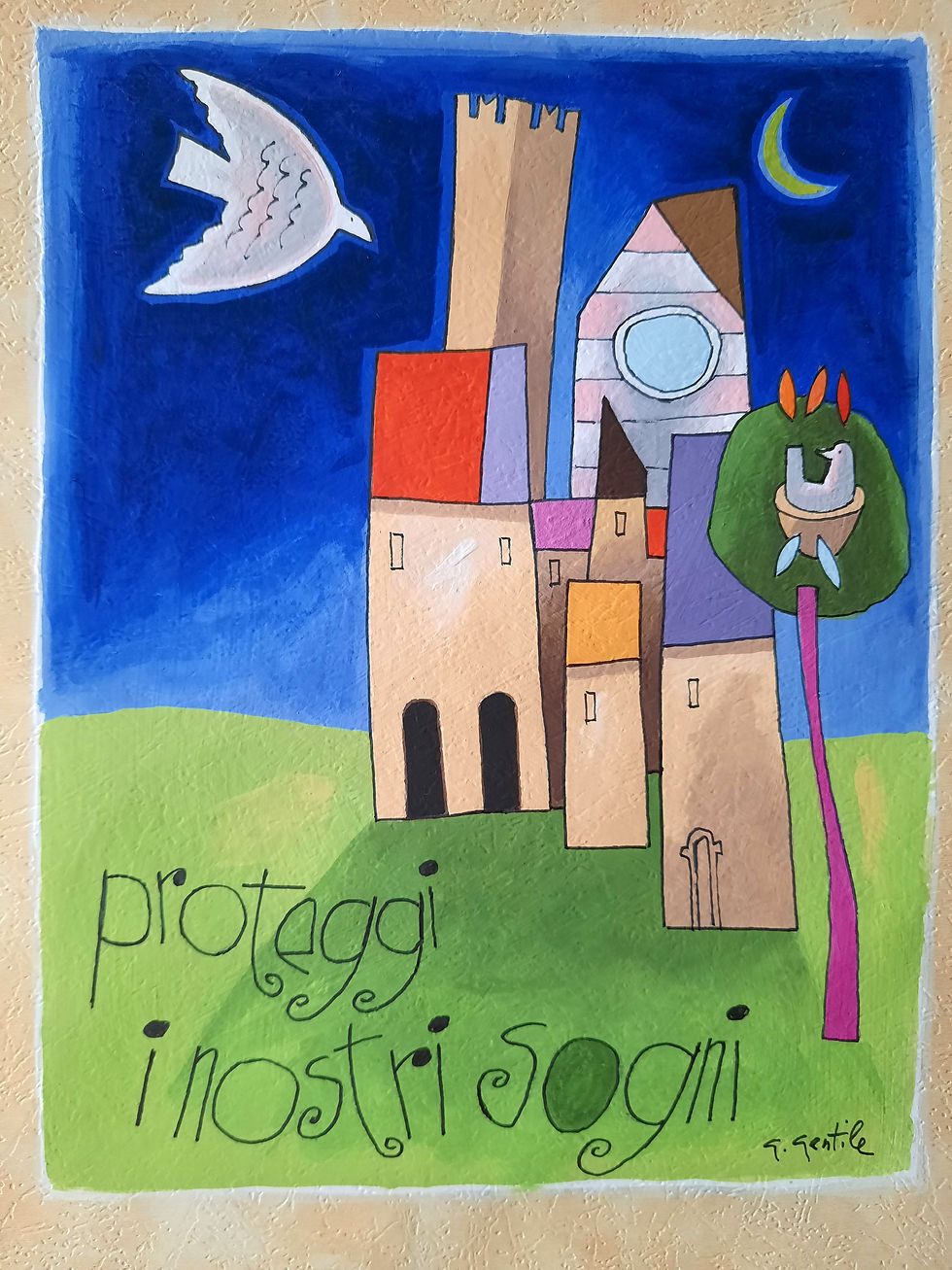 905. Proteggi i nostri sogni - tecnica mista su cartoncino